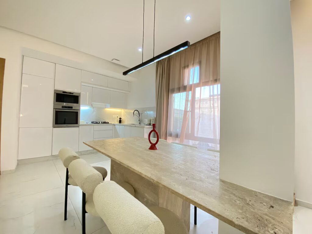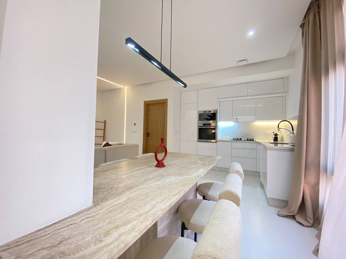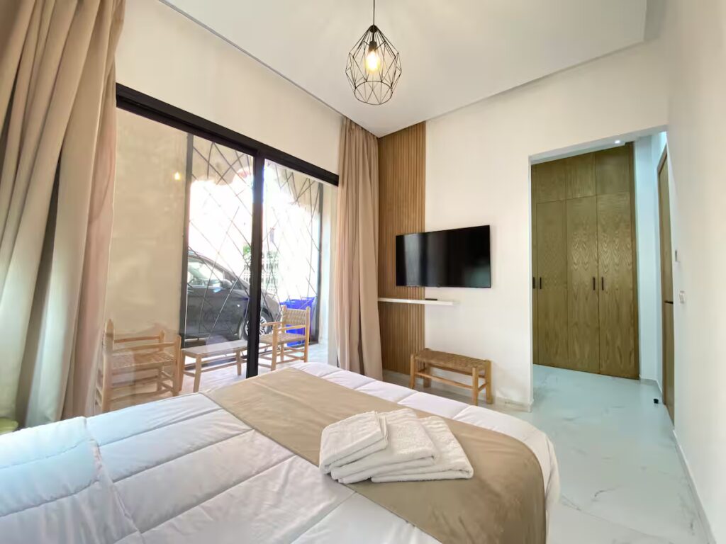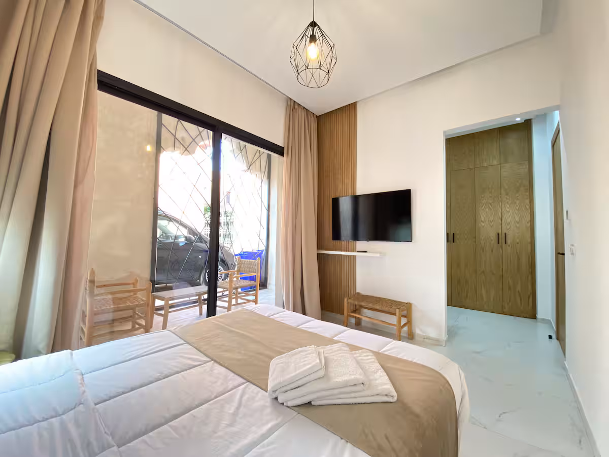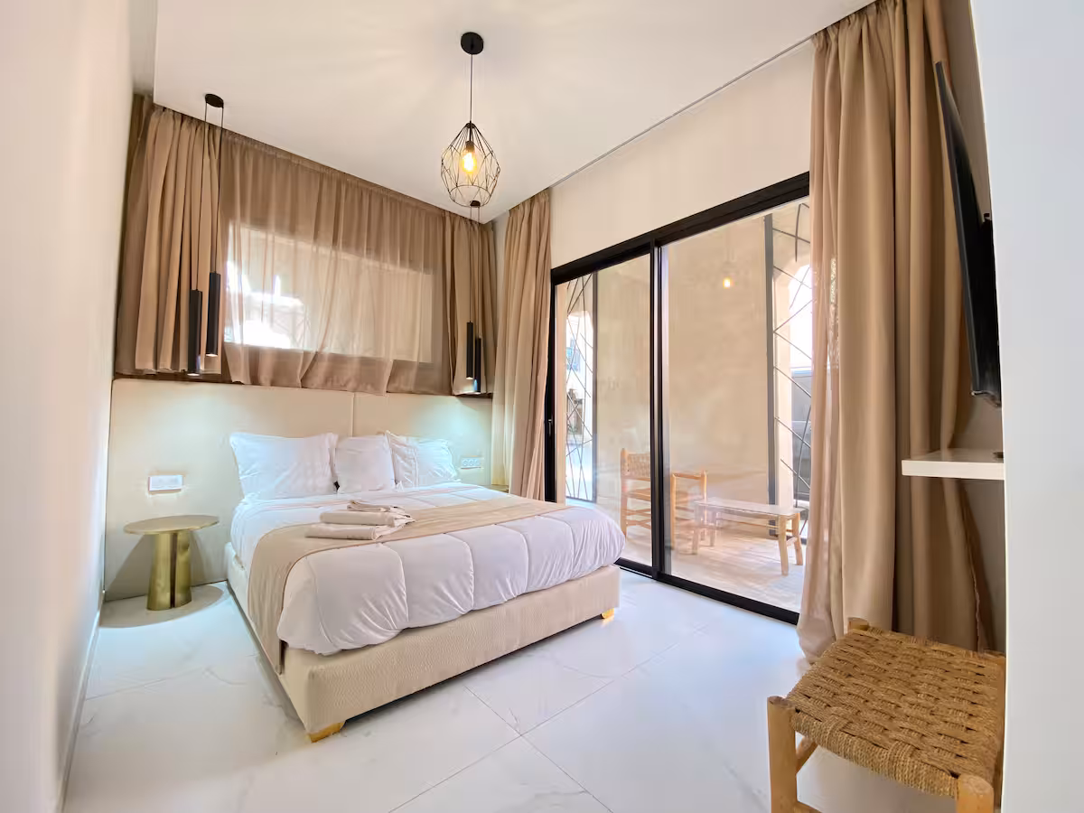 Découvrez ce rooftop moderne alliant confort et style contemporain. Son espace de détente à ciel ouvert, ainsi que sa piscine privée (chauffée en supplément) permettent de profiter du soleil de Marrakech en toute tranquillité. À seulement 10 minutes de l’aéroport, elle offre un emplacement pratique dans un cadre calme et reposant. Idéale pour un séjour en couple, en famille ou entre amis, dans un cadre agréable, convivial et chaleureux, proche des meilleures adresses de Marrakech. À l’intérieur, laissez-vous séduire par un salon raffiné baigné de lumière, deux chambres au charme apaisant avec leur salle de bain privative, et une cuisine entièrement équipée ouvrant sur un espace repas convivial. Un lieu pensé pour savourer chaque moment, entre confort, élégance et douceur de vivre à la Marocaine.